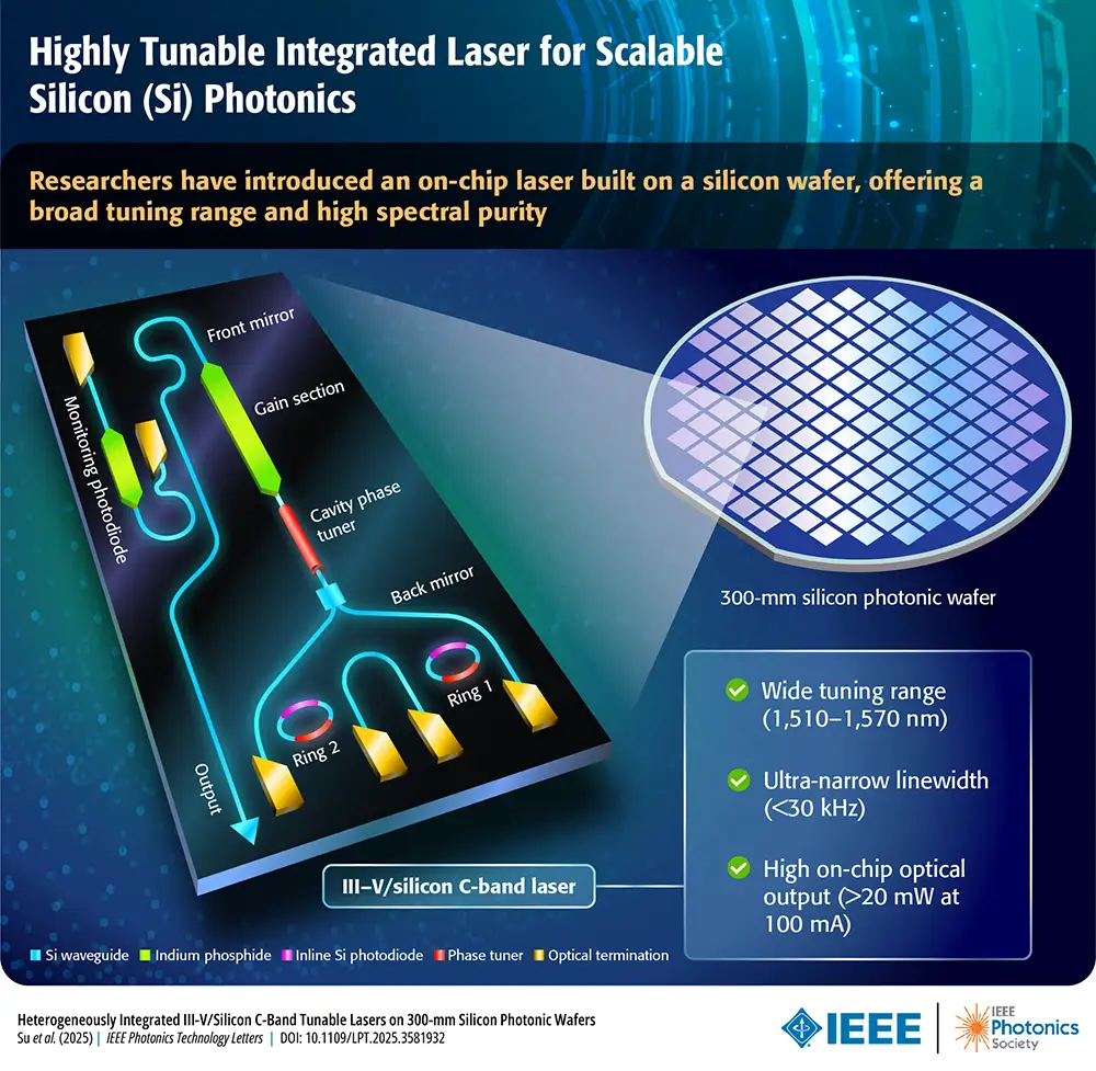 Heterogeneously integrated III-V/Silicon C-band tunable lasers on 300-mm silicon photonic wafers